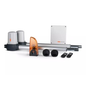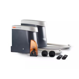OPENGATE 2 SENTINEL : motorisation à bras articulés, auto-apprentissage, ouverture piéton, angle d'ouverture maxi 120°, déverrouillage intérieur, garanti 5 ans. Composition du kit : 1 moteur principal + 1 moteur secondaire + 2 bras articulés + 2 télécommandes 4 canaux + 1 feu clignotant + 1 jeu de cellules + 1 gabarit de pose.